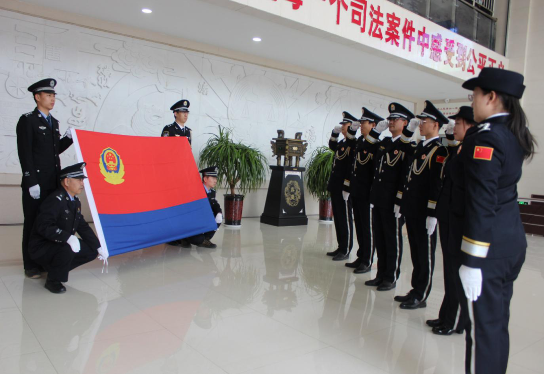警旗猎猎,忠诚为魂,训词谆谆,责任在肩。全体司法警察面向警旗重温入警誓词,庄严的宣誓,体现了全体司法警察忠诚践行“对党忠诚、服务人民、执法公正、纪律严明”的初心,饱含着对人民和司法工作的无比热爱。